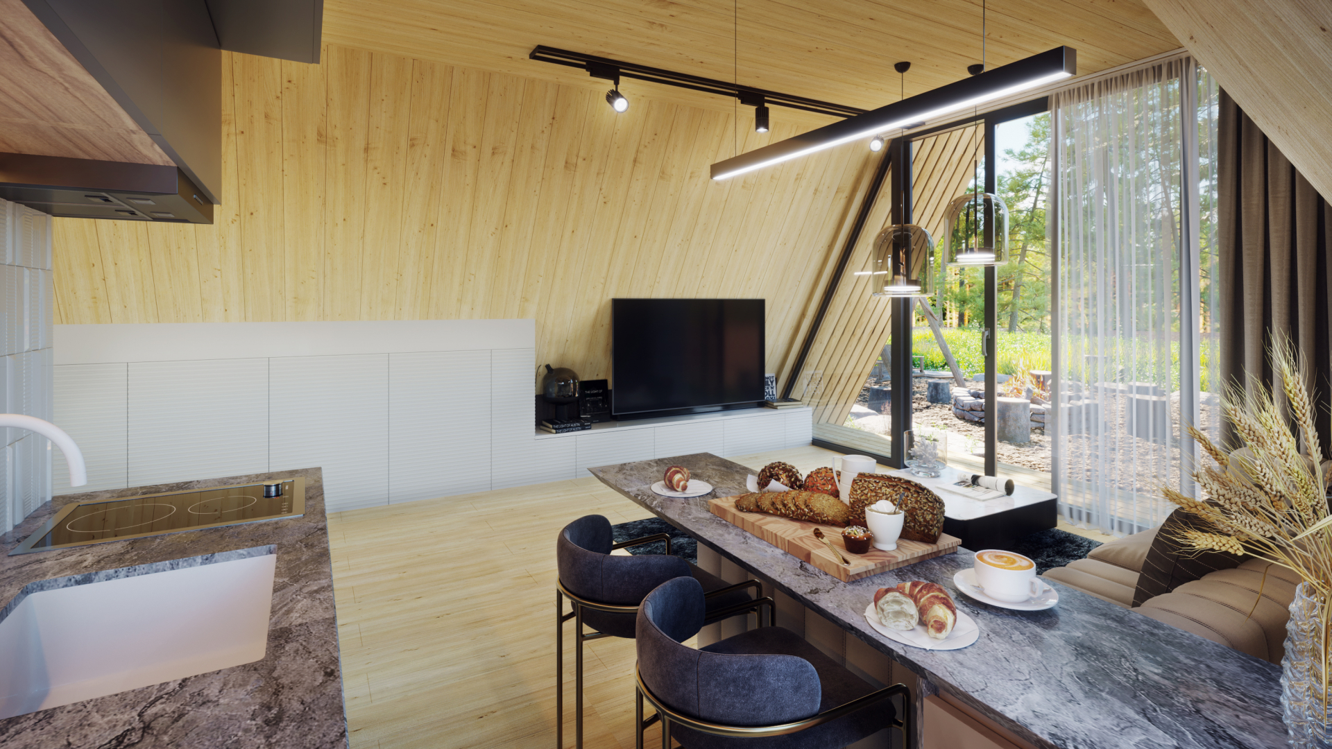 Package Standard (450 €) | A brief technical report (which includes a description of the construction design), drawing of the building's location on the building plot, floor plans, detailed cross-sections drawings with elevations A-A, B-B, side views, drawings of the truss and roof, drawings of electrical, plumbing, and heating technology (electric floor heating), product listing (window system and interior doors). Delivery in PDF format by email within 8 working days. |
