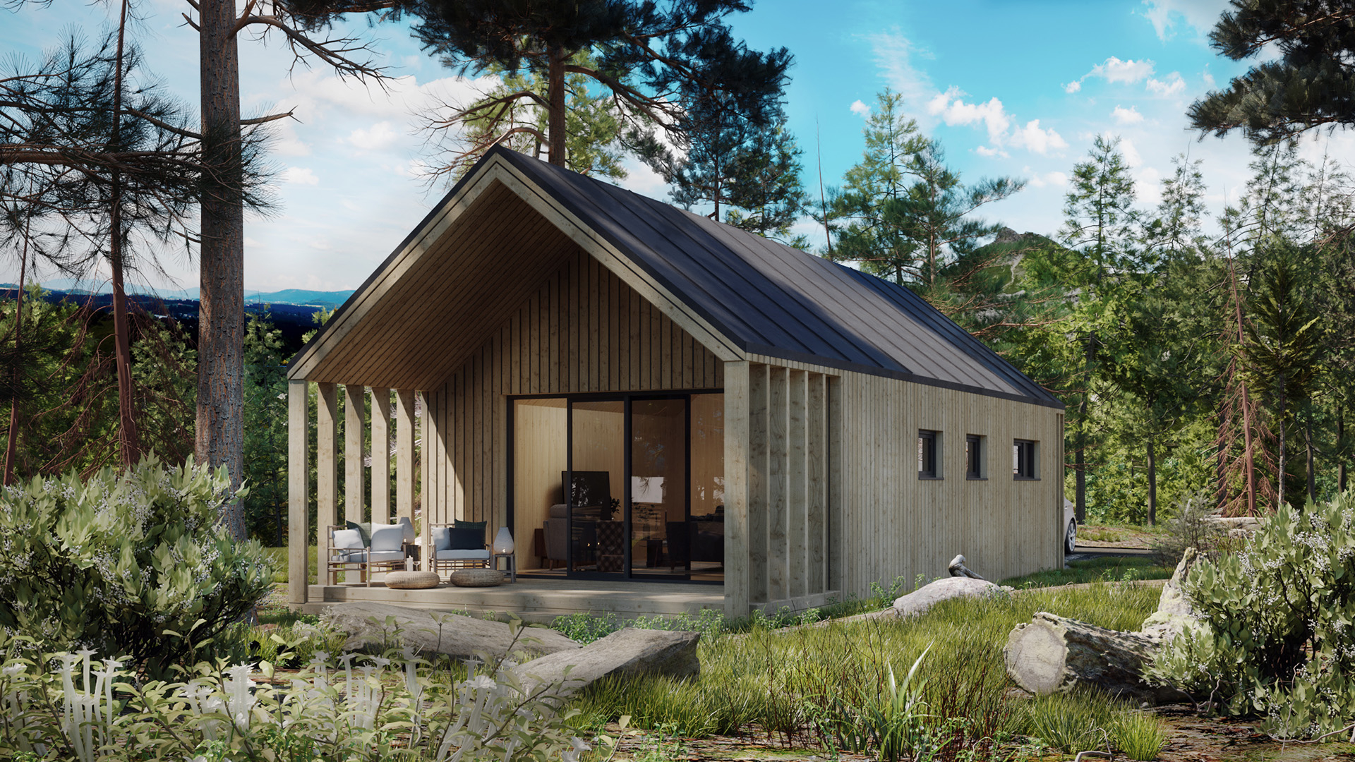 Medium sized 3-room cottage with separate entrance and bathroom, with a built-up area of 66 m2 and a usable area of 58 m2. This cottage is suitable to a family of two to four.