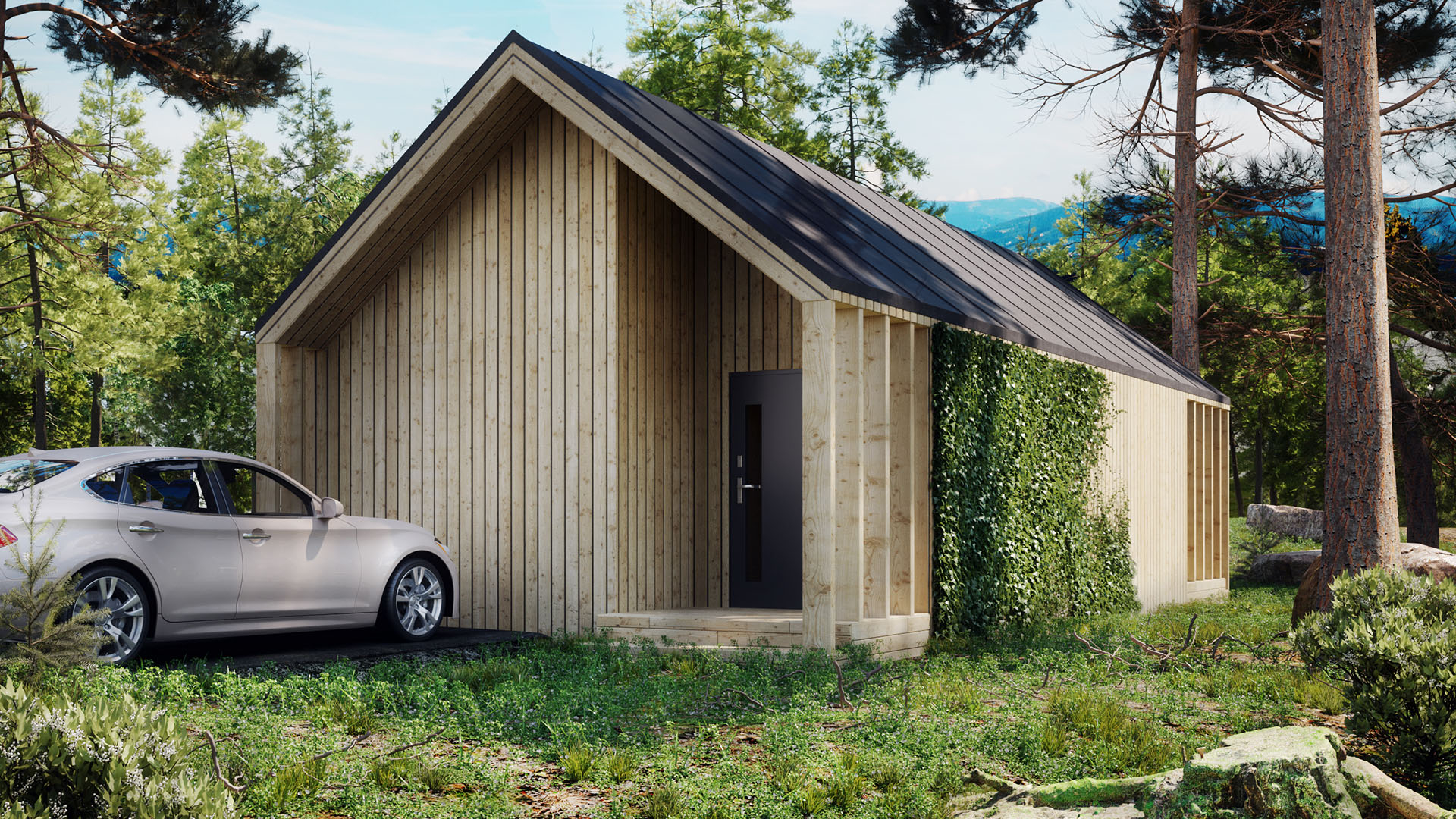 Package Standard (450 €) | A brief technical report (which includes a description of the construction design), drawing of the building's location on the building plot, floor plans, detailed cross-sections drawings with elevations A-A, B-B, side views, drawings of the truss and roof, drawings of electrical, plumbing, and heating technology (electric floor heating), product listing (window system and interior doors). Delivery in PDF format by email within 8 working days. |