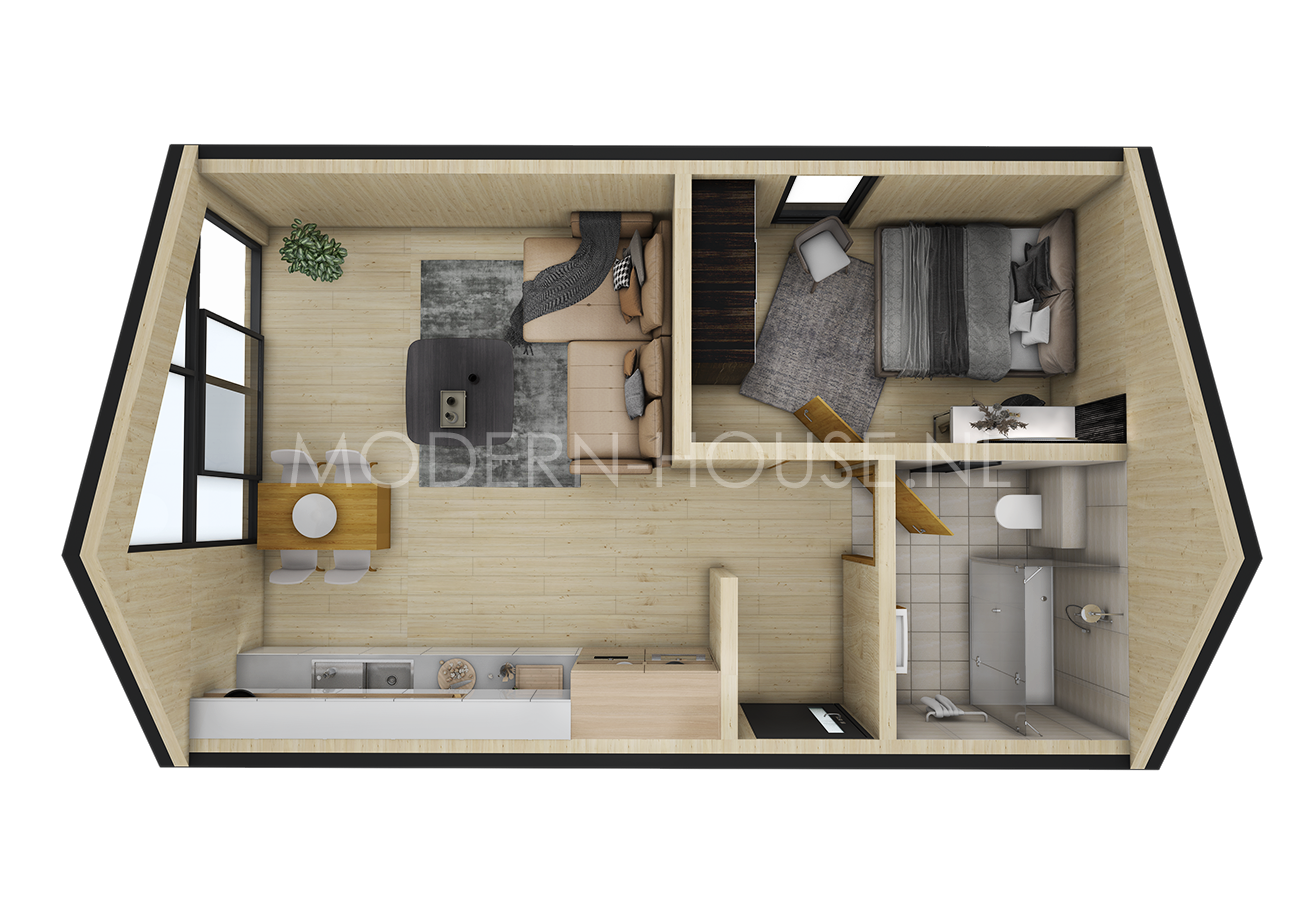 Package Standard (450 €) | A brief technical report (which includes a description of the construction design), drawing of the building's location on the building plot, floor plans, detailed cross-sections drawings with elevations A-A, B-B, side views, drawings of the truss and roof, drawings of electrical, plumbing, and heating technology (electric floor heating), product listing (window system and interior doors). Delivery in PDF format by email within 8 working days. |