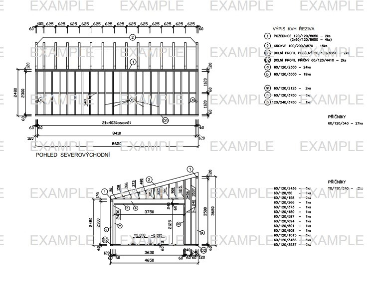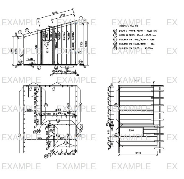 A brief technical report (which includes a description of the construction design), floor plans, detailed cross-sections drawings with elevations A-A, B-B, side views. Delivery in PDF by email within 1 – 2 working days.